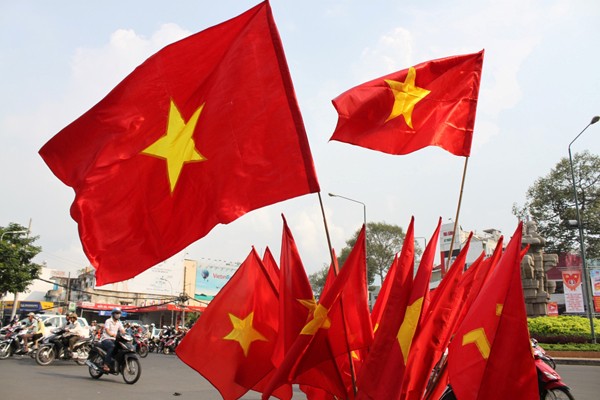 Bendera nasional dijual di jalan-jalan di kota Hanoi
