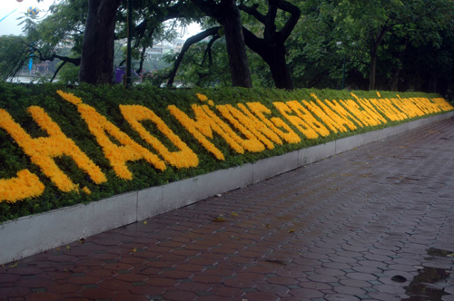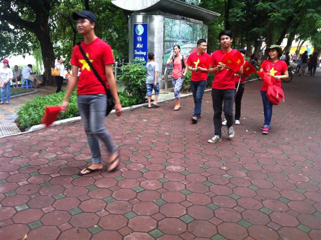 Semua jalan di kota Hanoi kelihatan warna bendera nasional Vietnam
