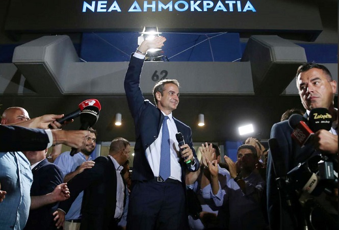 PM Yunani, Kyriakos Mitsotakis dan para pendukung di Athena (Foto: Reuters) |