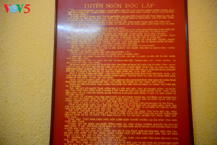 | Di sini, Presiden Ho Chi Minh telah menulis dan bersama dengan para kader KS PKV mengesahkan isi Teks Proklamasi Kemerkedaan, melahirkan negara Republik Demokrasi Vietnam. |