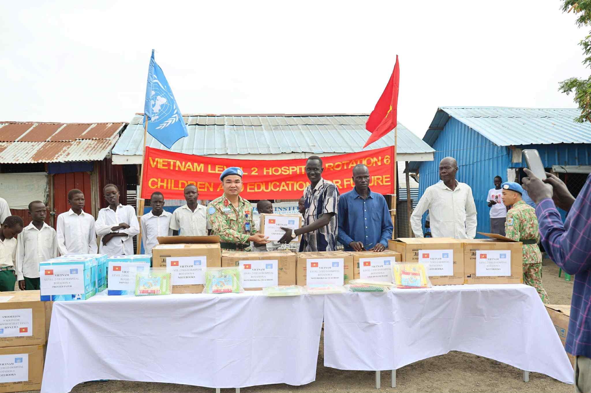 Tidak hanya memberikan bantuan kepada sekolahan semua barang esensial seperti papan tulis, pena, buku catatan saja, tetapi para perwira Vietnam juga memberikan 250 bingkisan kepada para pelajar tipikal. Bingkisan-bingkisan tersebut meskipun kecil tapi telah menjadi sumber dorongan semangat besar terhadap para benih muda yang sedang tumbuh mendewasa di tengah kesulitan. Gabriel Gatduel, Kepala SD Banpa, Sudan Selatan mengatakan: