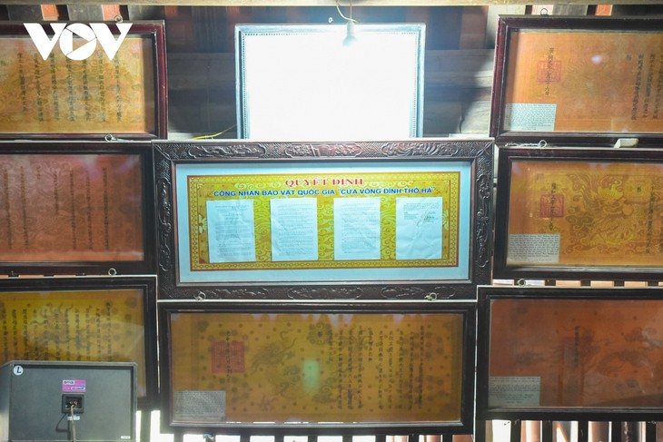 Mengalami sejarah lebih dari 300 tahun, semua potongan-potongan ukiran masih tetap dilestarikan seutuhnya oleh warga Tho Ha dari generasi ke generasi dengan penghormatan tertinggi. Setiap tahun, pada tgl 15 bulan pertama dan tgl 20 bulan delapan (kalender impek), para lansia di desa juga menyiapkan sajian untuk dipersembahkan dan menyatakan rasa hormatnya kepada pendahulu. Foto: Van Giang/VOV.VN