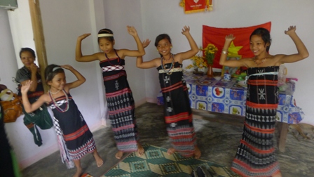 Anak anak etnis minoritas Co Tu belajar tarian Tung tung da da.