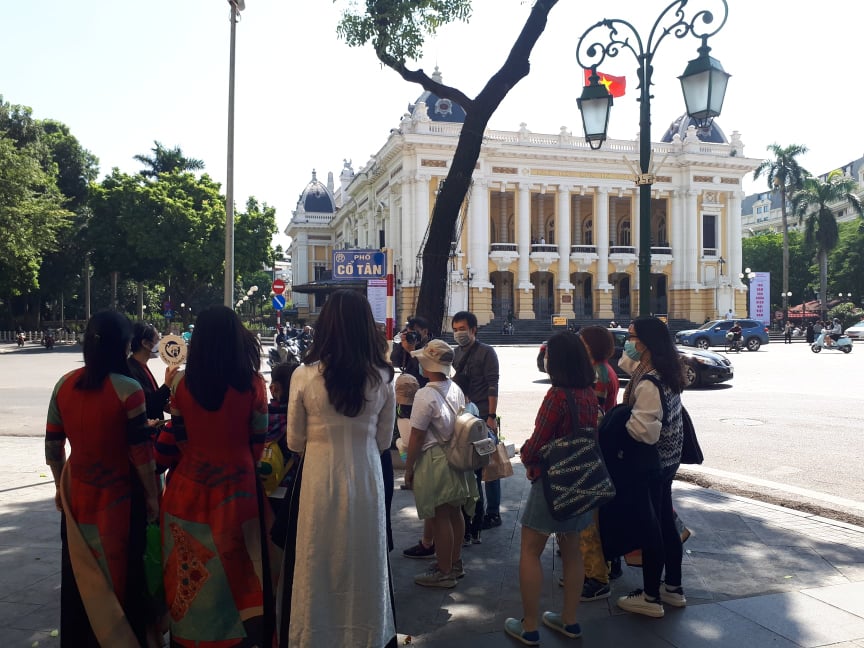 Saat meluncurkan tur ini, kami menarik banyak keluarga, pelajar, dan anak-anak. Saat mengatur tur dan mencegah pandemi COVID-19, kami membagi kelompok menjadi kelompok-kelompok kecil dan menjaga jarak untuk memastikan keselamatan. Selain belajar tentang seni dan arsitektur, pengunjung juga mengetahui nilai sejarah budaya ibu kota Hanoi.