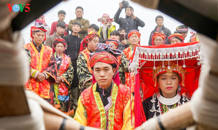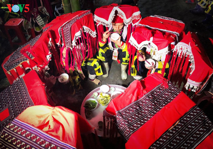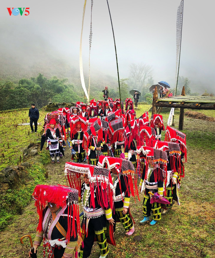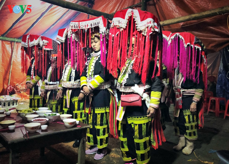 Busana-busana tradisional dari wanita etnis Dao pada upacara ini |