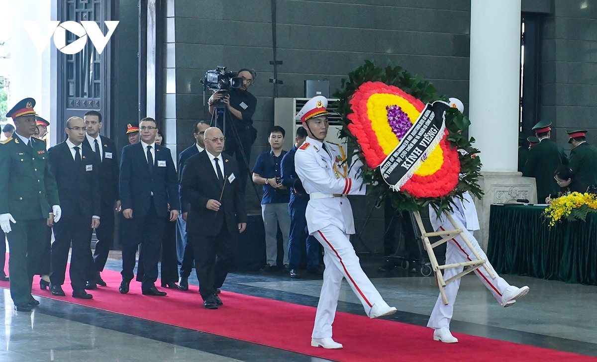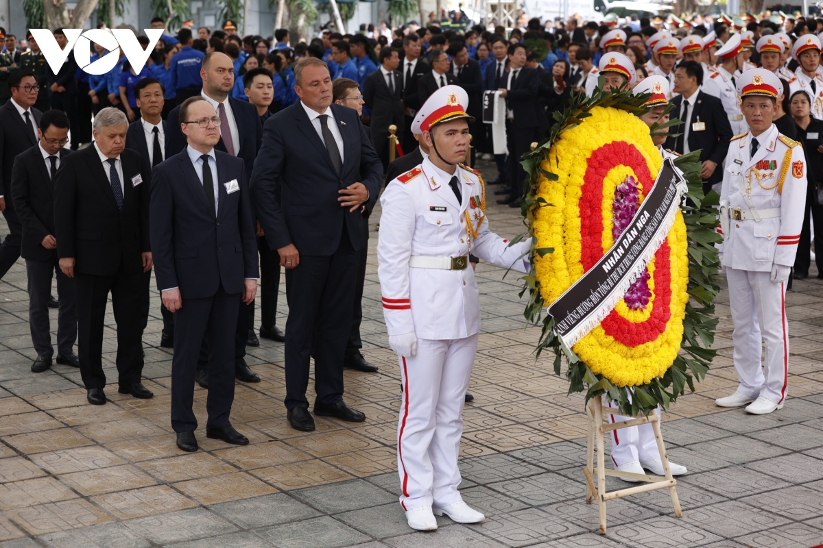 Pada hari yang sama, banyak negara telah mengirim rombongan-rombongan perwakilan untuk berziarah kepada Sekjen Nguyen Phu Trong di Wisma Duka Nasional di Jalan Tran Thanh Tong, Nomor 5, Kota Hanoi. Ketua Partai Rakyat Kamboja, Ketua Majelis Tinggi Kamboja, Hun Sen, mantan PM Kamboha, mengepalai rombongan Kamboja berziarah kepada Sekjen Nguyen Phu Trong. Rombongan Negara Kuba yang dikepalai Ketua Majelis Kekuatan Rakyat Nasional Kuba, Esteban Lazo Hernandez masuk berziarah; PM Han Duck-soo, utusan khusus Presiden Republik Korea mengepalai rombongan Republik Korea masuk berziarah kepada Sekjen Nguyen Phu Trong. Rombongan Jepang yang dikepalai Suga Yoshihide (mantan PM), utusan khusus PM Kishida Fumio masuk berziarah. Sue Lines, Ketua Majelis Tinggi Australia, mengepalai rombongan Australia masuk berziarah. Rombongan Uni Eropa yang dikepalai Josep Borrell, Wakil Presiden Komisi Eropa, Wakil senior urusan kebijakan keamanan dan diplomatik Uni Eropa masuk berziarah kepada Sekjen Nguyen Phu Trong. Selain itu, beberapa rombongan internasional seperti Indonesia, India, Vanuato, Aljazair, Swiss, Selandia Baru, Republik Demokratik Rakyat Korea, Myanmar, dan sebagainya, juga telah masuk berziarah kepada Sekjen Nguyen Phu Trong.