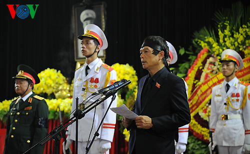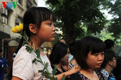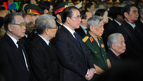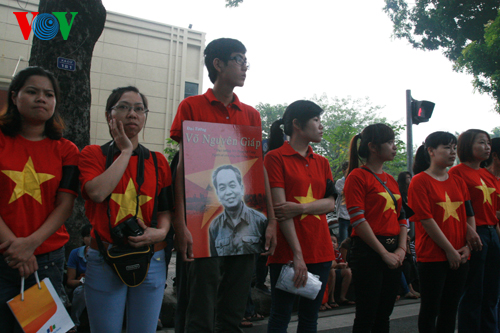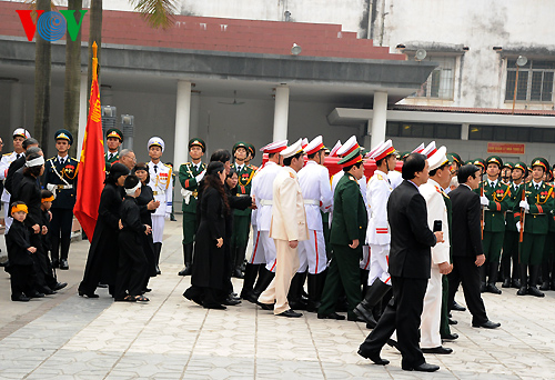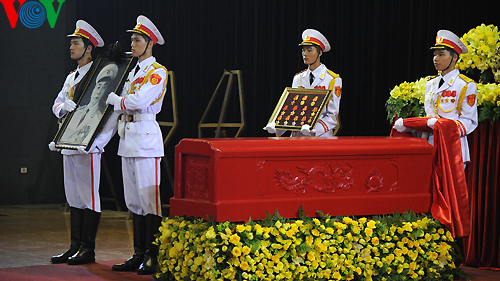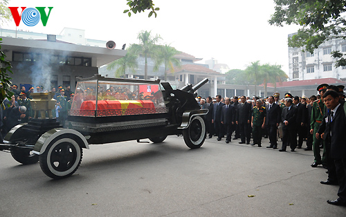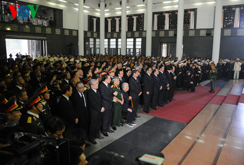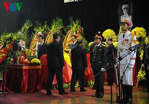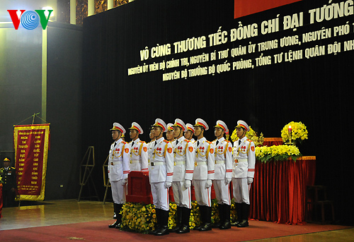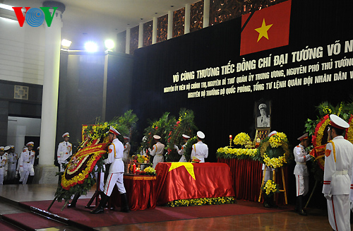 (VOVworld) - Selama upacara pemakaman kenegaraan, pada Minggu (13 Oktober), upacara belasungkawa kepada Almarhum Jenderal Vo Nguyen Giap, Mantan Anggota Polit Biro Komite Sentral Partai Komunis Vietnam, Mantan Sekretaris Komisi Militer Komite Sentral, Mantan Deputi Harian Perdana Menteri Pemerintah, Mantan Menteri Pertahanan, Panglima Tertinggi Tentara Rakyat Vietnam, mantan Anggota Majelis Nasional dari angkatan I-VII telah berlangsung di Rumah Duka Nasional di Jalan Tran Thanh Tong, Nomor 5, ibukota Hanoi.