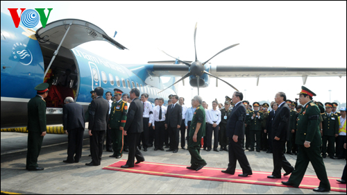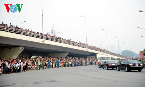 | Đoàn xe mang linh cữu Đại tướng di chuyển đến sân bay Nội Bài |