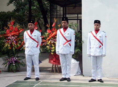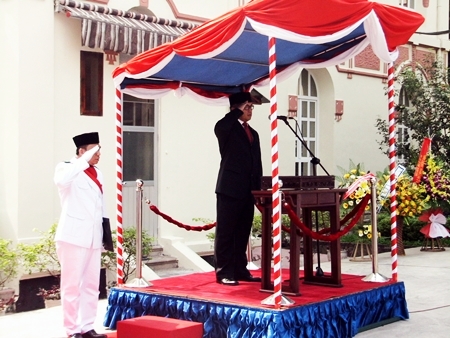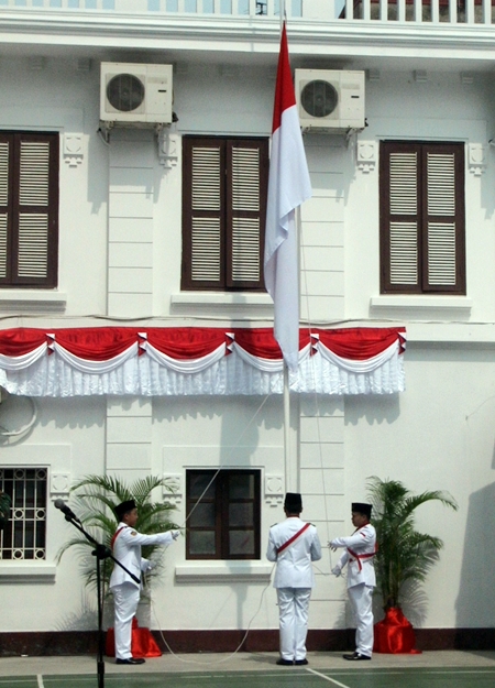 | Bendera nasional merah putih dinaikkan |
