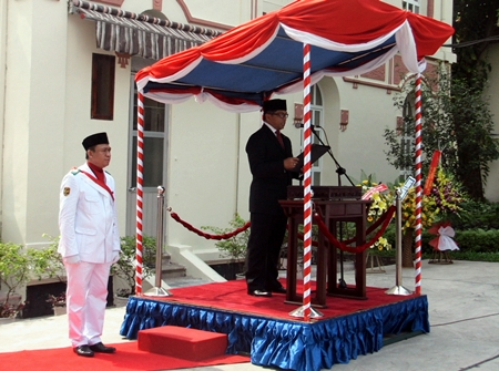 | Duta Besar Luar Biasa dan Berkuasa Penuh Republik Indonesia untuk Vietnam, Mayerfas membacakan pidato peringatan ultah ke -68 Hari Kemerdekaan RI. |