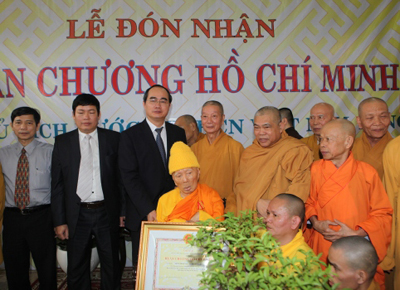 Deputi PM Nguyen Thien Nhan menyampaikan Bintang Chi Minh kepada Biksu besar Thich Minh Chau