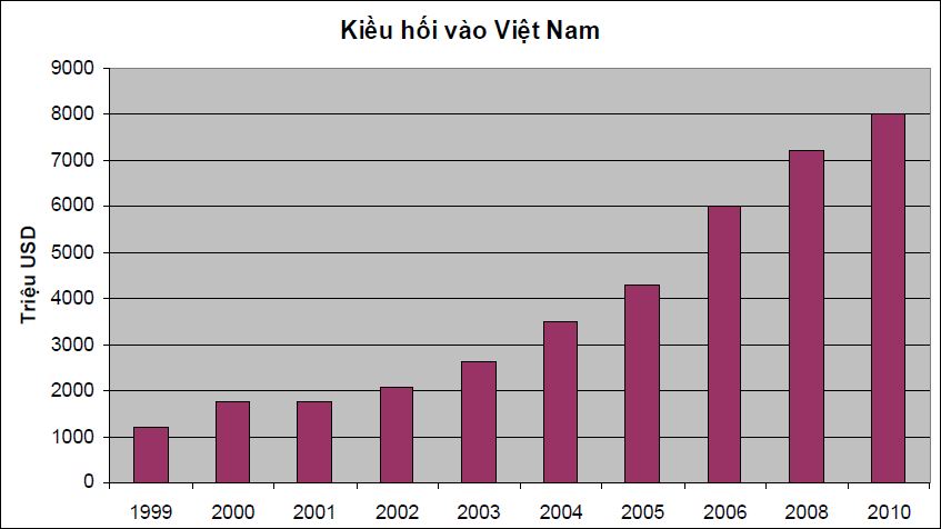 Jumlajh valuta asing yang ditransfer oleh para diaspora Vietnam ke Vietnam berskala besar dan valuta asing yang mereka transfer ke Vietnam meningkat melalui banyak sumber. Sekarang, Vietnam mempunyai kira-kir 4,5 juta diaspora di lebih dari 100 negara dan teritorial. Selain itu, valuta asing yang ditransfer oleh para diaspora Vietnam meningkat karena Negara membolehkan banyak organisasi turut menstransfer valuta asing milik para diaspora Vietnam seperti bank-bank perdagangan, kantor post, perusahaan layanan jasa transfer valuta asing milik diaspora Vietnam.