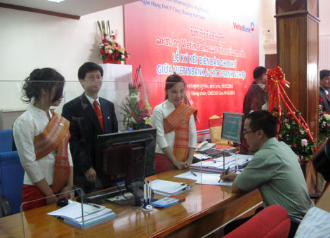 (VOVworld) - Pada selama ini, banyak bank besar dalam sistem perbankan Vietnam telah menggeliat ke pasar luar negeri untuk mencari kesempatan-kesempatan bisnis. Bank Perdagangan Persero Vietnam (Vietinbank) walaupun baru meresmikan cabangnya di Vientiane (ibu kota Laos) kira-kira setahun ini, tetapi telah selangkah demi selangkah menegaskan prestise dan brandnya dengan kegiatan-kegiatan investasi di negara sahabat.
