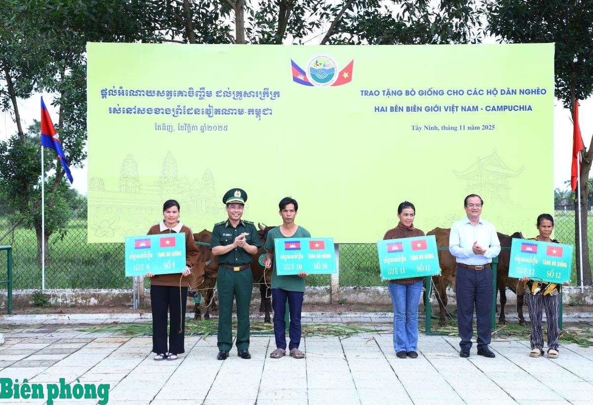 Pemberian sapi indukan kepada warga di kedua sisi perbatasan Vietnam-Kamboja di Provinsi Tay Ninh (bienphong.com.vn) |