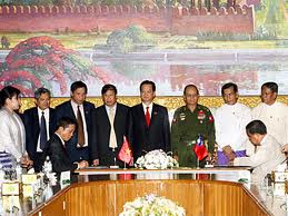 (PM Nguyen Tan Dung dan penjabat PM Myanmar menyaksikan upacara penandatangan berbagai MoU.Foto:vietbao.vn)