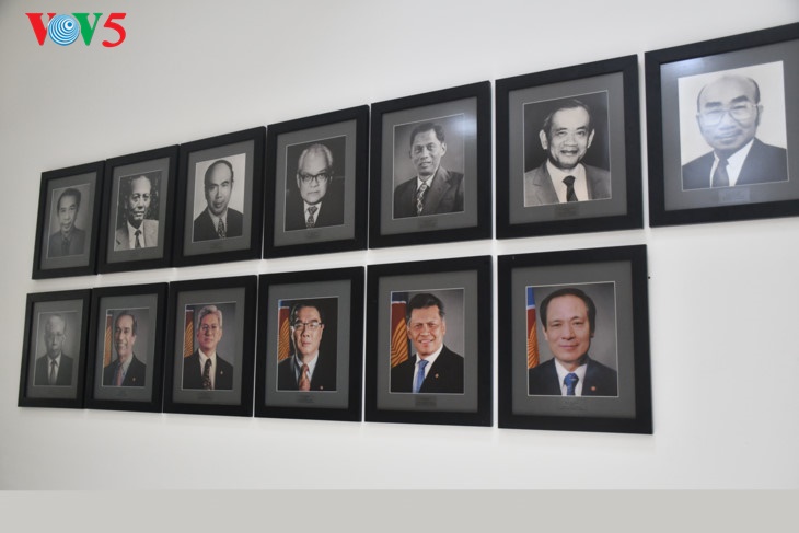 Gambar-gambar para Sekretaris Jenderal ASEAN melalui periode- priode dipasang dengan hormat di dalam gedung. |