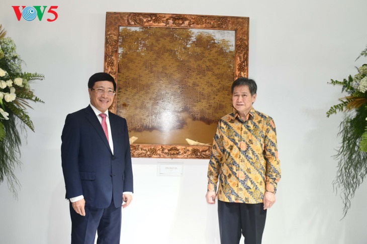 Deputi PM, Menlu Pham Binh Minh telah menghadiahkan kepada Badan Sekretariat ASEAN lukisan lak tentang "Bambu gading Vietnam" untuk dipasang di gedung baru ini. |