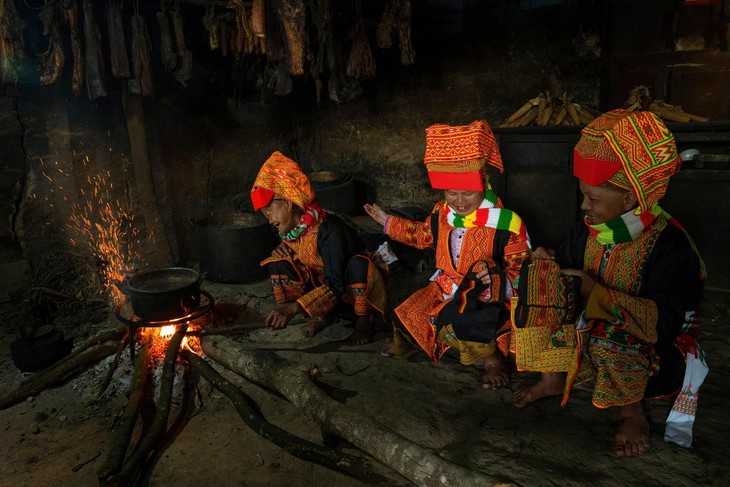Warga etnis minoritas Lu Giang, Kabupaten Mau Son, Provinsi Lang Son di samping tungku kayu