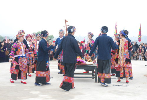 Di halaman yang luas, seorang dukun etnis Lo Lo di kabupaten Meo Vac, provinsi Ha Giang sedang membacakan mantra untuk mengundang Dewa datang menyaksikan upacara memohon hujan dari rakyat desa. Upacara ini dipilih sebagai aktivitas pembukaan bagi program pesta “Warna musim Semi di seluruh penjuru Tanah Air” tahun ini. Ho Viet Son, Direktur Pusat Kebudayaan provinsi Ha Giang, memberitahukan: “Rakyat etnis minoritas Lo Lo pada khususnya dan rakyat semua etnis di provinsi pegunungan Ha Giang pada umumnya tinggal di daerah pegunungan batu, cuacanya sangat sengit, dingin dan sedikit hujan, maka setiap awal tahun, rakyat etnis minoritas Lo Lo selalu mengadakan upacara memohon hujan dan ketenteraman”