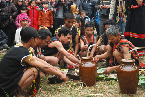 Berbeda dengan etnis minoritas Lo Lo, dalam upacara memohon hujan dari rakyat etnis minoritas Cor di provinsi Quang Nam (Vietnam Tengah) ada partisipasi dari sesepuh desa beserta seluruh rakyatnya. Upacara ritual yang suci ini diadakan dengan diiringi suara gemanya bonang menarik perhatian banyak orang. Saudari Duong Thi Thanh Lan merasa sangat bangga ketika dapat mewakili etnis minoritas Cor di provinsi Quang Nam memperkenalkan ciri-ciri khas dalam kehidupan etnisnya kepada semua etnis sesaudara. Dia mengatakan: “