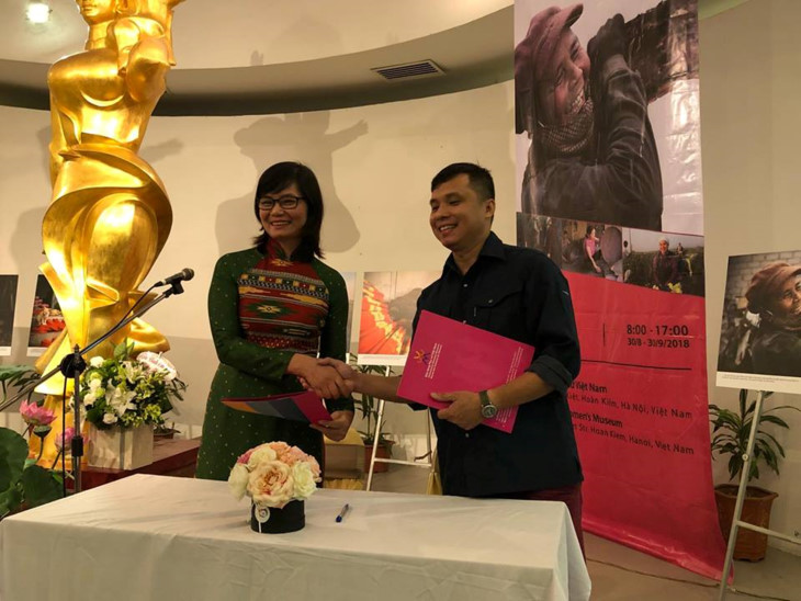 Ini merupakan foto-foto yang dipajang untuk pertama kalinya. Di belakang setiap foto adalah keindahan pekerjaan dengan karakter yang baik dari kaum wanita Vietnam.
