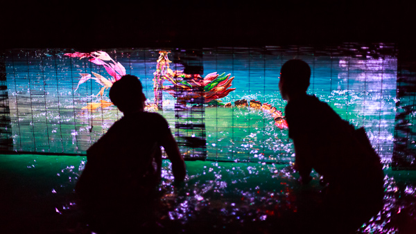 Para seniman - seniawati merendamkan diri dalam air untuk memainkan wayang.