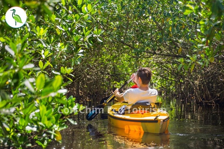 Wisatawan bisa naik erahu motor atau mendayung SUP untuk mengeksplor ruang ekosistem Con Chim.