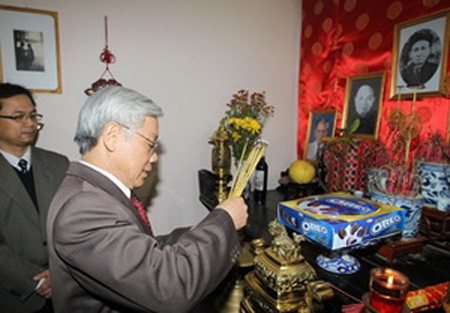 Sehubungan dengan peringatan ulang tahun ke 82 Hari Jadinya Partai Komunis Vietnam (3 Februari 1930- 3 Februari 2012 ) dan menyambut Musim Semi baru - 2012, Sekretaris Jenderal Komite Sentral Partai Komunis Vietnam Nguyen Phu Trong, Kamis sore, 19 January telah membakar hio untuk mengenangkan Almarhum Sekretaris Jenderal Partai Komunis Vietnam Nguyen Van Cu di Wima peringatan keluarga Almarhum Sekretaris Jenderal Nguyen Van Cu di kecamatan Phu Khe, kota madya Tu Son, provinsi Bac Ninh...