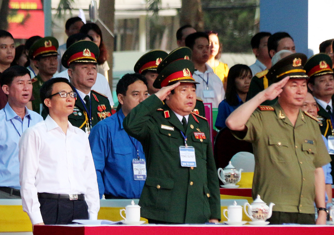 Persiapan parade militer untuk memperingati Ultah ke-40 Pembebasan Vietnam Selatan dan Penyatuan Tanah Air