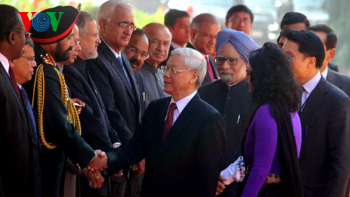 Upacara penyambutan Sekjen Nguyen Phu Trong di Istana Presiden India