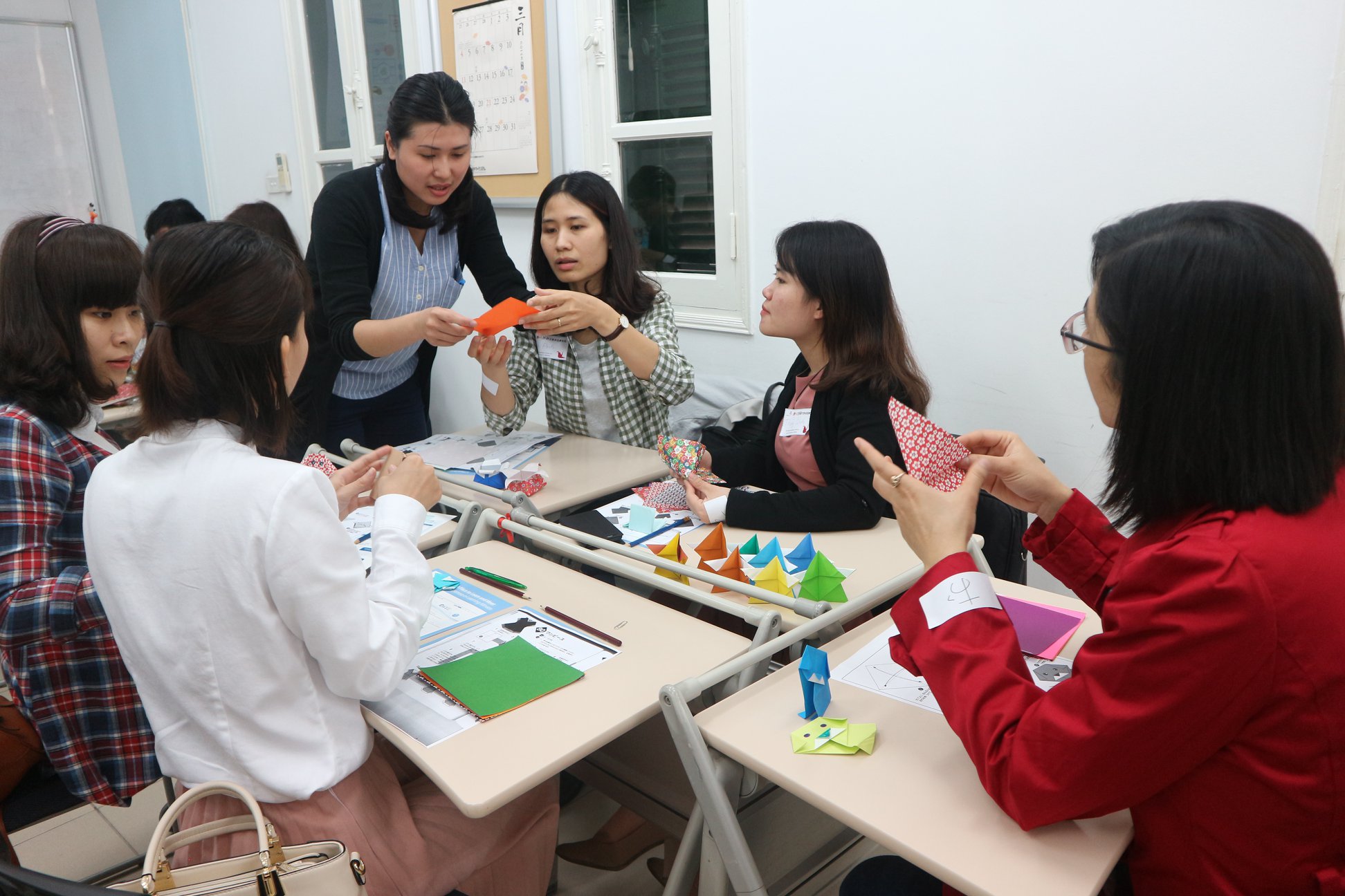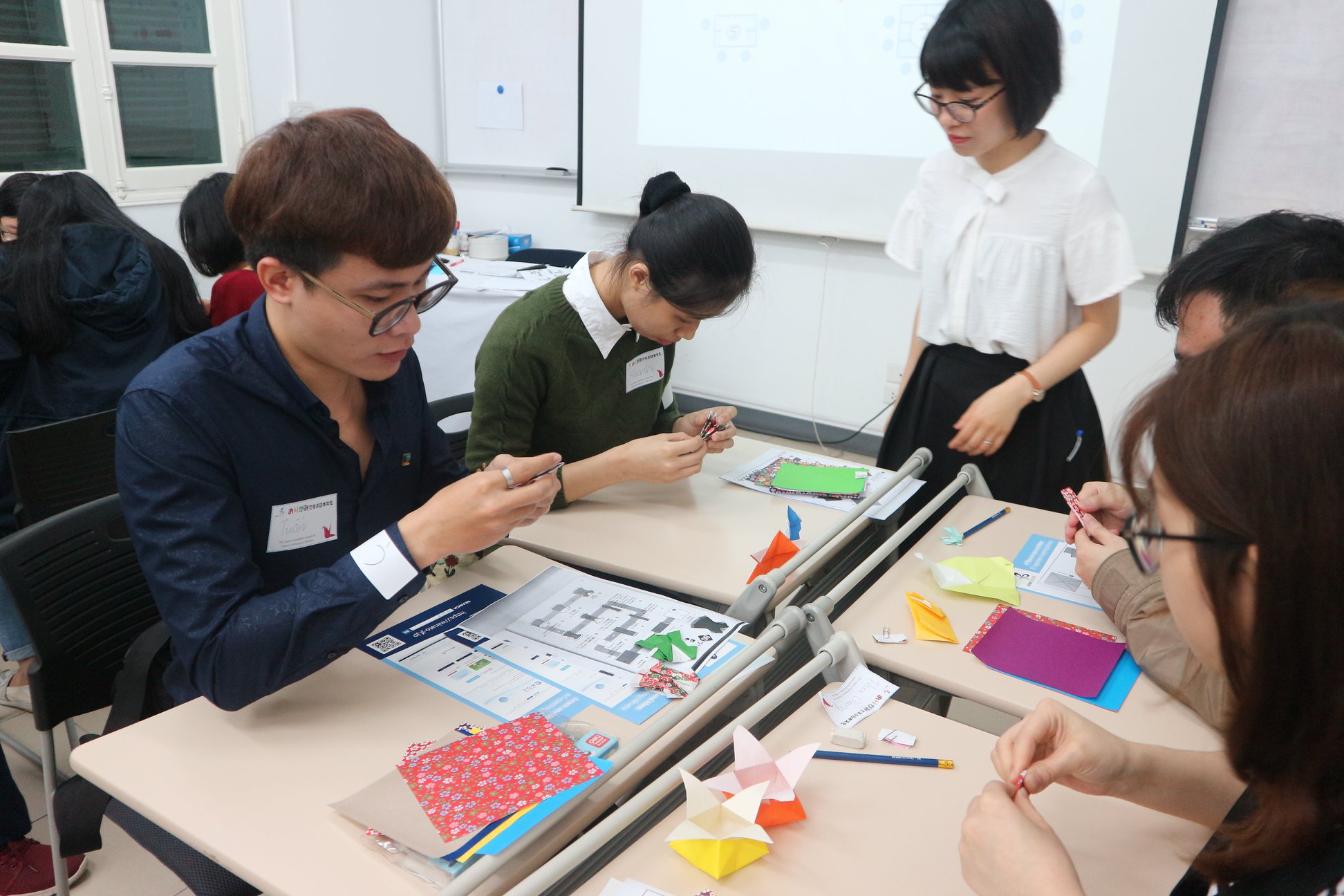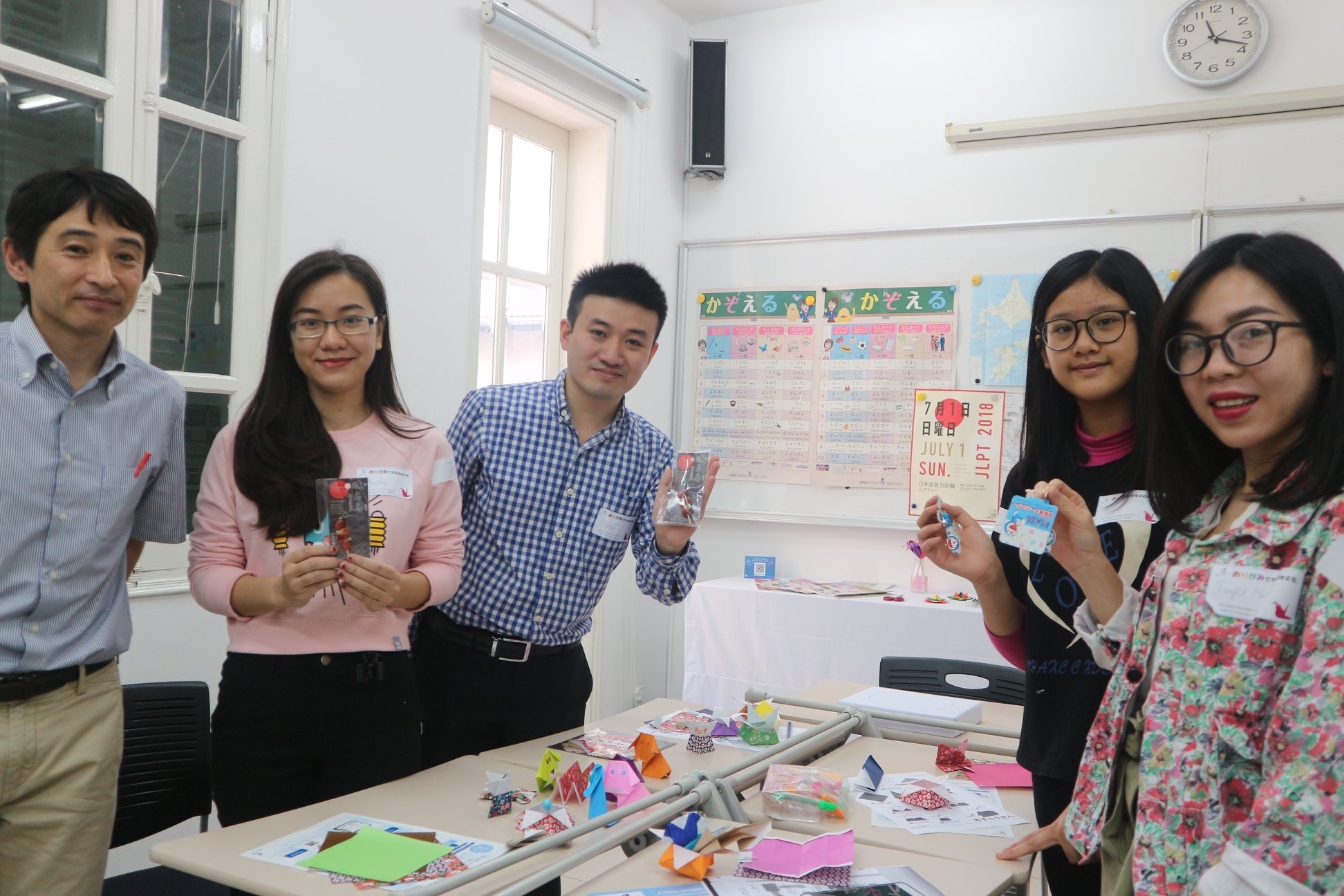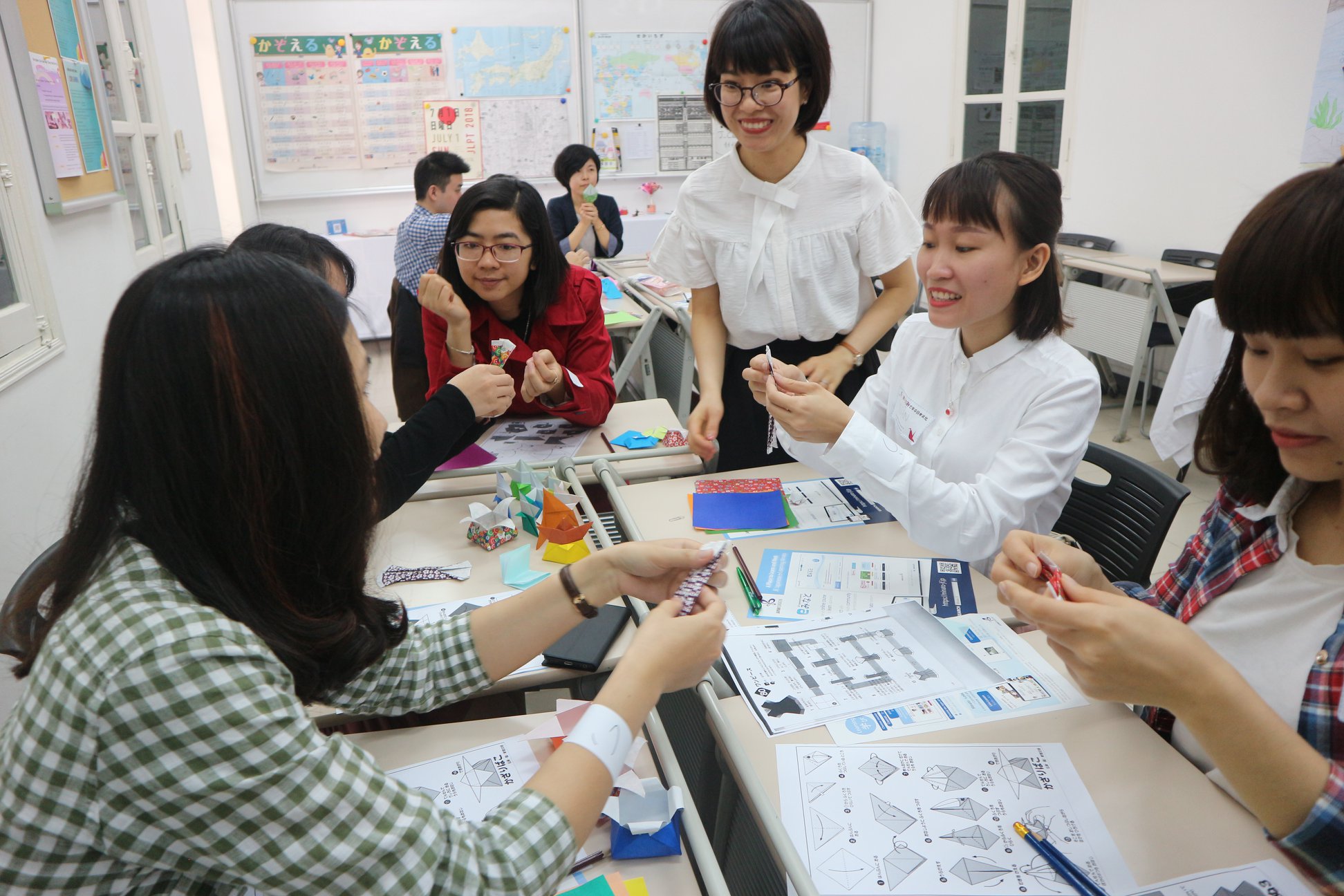 日本文化交流センターの教師らは2時間にわたりって、折り紙の歴史や作り方などを紹介しました。イベントに参加した人々は折り紙の折り方を理解しているだけでなく、折り紙にかかわる言葉を始め、日本語で会話できるようになりました。イベントは日本文化を愛好するベトナム人の若者が互いに交流するチャンスともなりました。この写真記事で、これをご紹介します。
