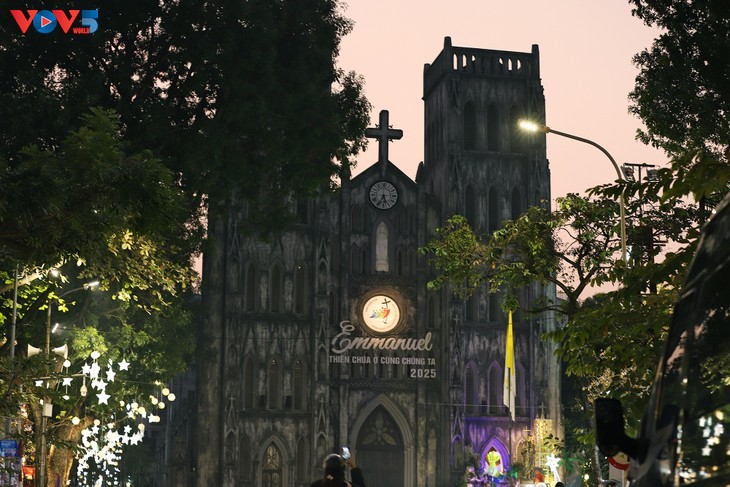 | 市民や外国人観光客でにぎわう、クリスマスシーズンのハノイ大教会 |