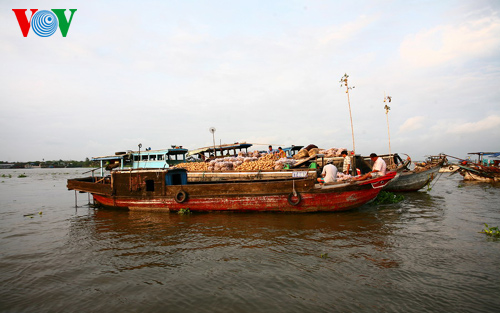 南部ティエンザン(Tien Giang)省カイベ(Cai Be)県カイベ町にはカイベ水上市場があります。これは西南部地域の最も大きな市場の1つです。その市場では日用品や、果物、食品など様々な商品が売られています。 この市場は一日中賑やかで、西南部地方の有名な観光スポットも見られています。この写真記事でその雰囲気をご紹介します。どうぞご覧下さい。