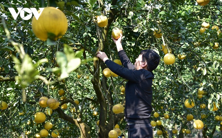| 2024年の伝統的お正月テトに向けて、ジエン村のザボン栽培者は収穫を始めた |