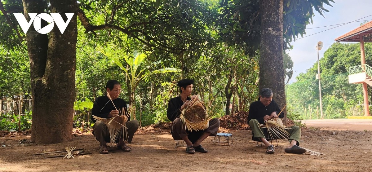 カー集落の人々が竹細工をしている |