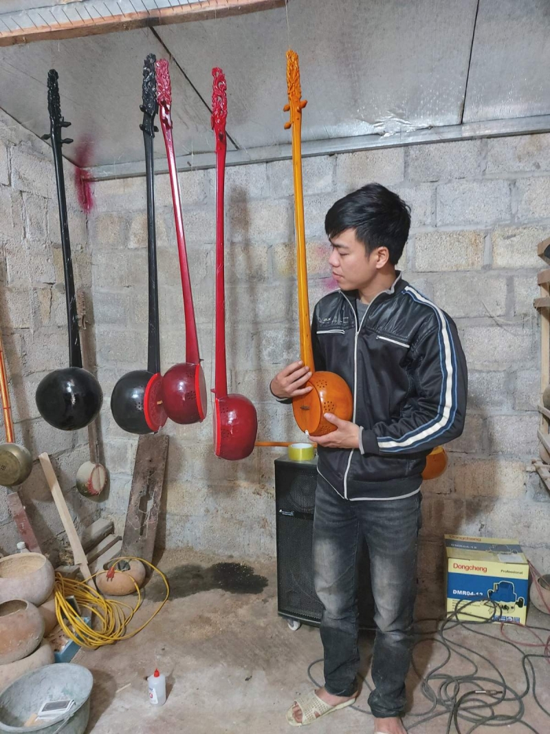 「私の木工所は年平均約100個の琴「ティン」を作ることができます。種類は、儀式用の「ティン」から、演奏用の「ティン」や飾り物としての「ティン」まで様々ですが、儀式用の「ティン」は私が自分で作っています。ほとんどの注文は近隣からのものですが、遠いところからの注文もあります。近年、民謡「テン」が徐々に普及しているため、琴「ティン」への需要が高まっているようです」