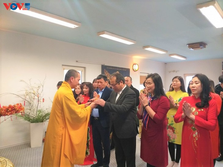 | ティック・トゥ・フオック大徳と仏教徒ら(写真:Nho Biền/VOVのプラハ支局) |