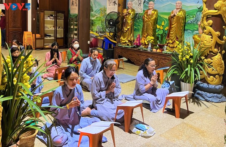 | ラオスの首都ヴィエンチャンにある寺に参拝するラオス在留ベトナム人(写真:VOVのラオス支局) |