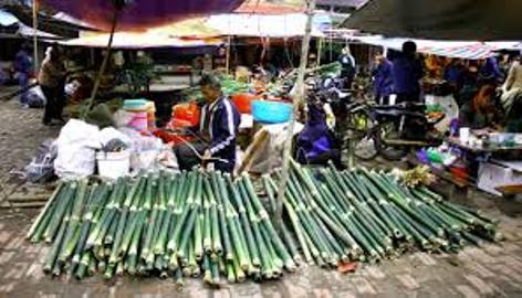 ベトナムでは旧暦の12月23日から、ベトナムの伝統的旧正月テトを準備する雰囲気が活発になってきます。テト間近に、都市部における市場は色とりどりの花や飾り物などで鮮やかになっていますが、農村部の市場はバナナ、ザボン、ゾンの葉など質素なものがいっぱい並べられています。これらのものは大部分、売り手が自分で育てたものです。ハノイ市郊外にあるタインオアイ県の市場の売り手の一人であるグェン・タイン・バン( Nguyen Thanh Van) さんは次のように語りました。