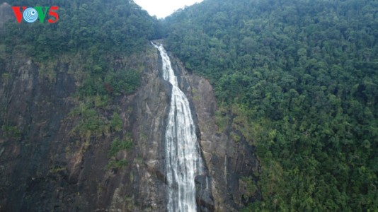 標高300メートルのドゥクエン滝はトゥアティエンフエ省フーロック県ロックチ村にあるバクマ国立公園に位置しています。バクマ山の麓から12キロ行くと右側にドゥクエン滝に至る小道を見えます。その後、谷川を渡って、およそ1時間に歩くとドゥクェン滝に着きます。ドゥクェン滝を初めて訪れたフエの観光客グェン・ビン・ホアン( Nguyen Vinh Hoang) さんは次のように語りました。
