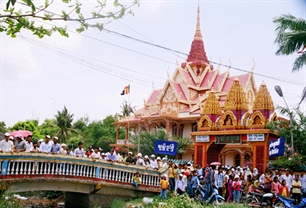 5日午前、南部のカント(CanTho)市で、南部に住むクメール族のお正月チョル・チョナム・トメイにあたり、指導者ら、僧侶、幹部、生徒の代表合わせて500人あまりによる集いが行なわれました