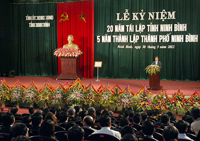 30日午前、北部ニンビン省の行政府創立20周年を記念する式典が行われました。式典で挨拶にたったベトナムのグェン・タン・ズン首相はニンビン省の党委員会、人民委員会、住民が収めた成果を評価するとともに、同省に対して「現在の党建設、綱紀粛正に関する幾つかの緊急問題」に課されたベトナム共産党中央委員会第4回総会を確実に実施するよう求め、次のように語りました