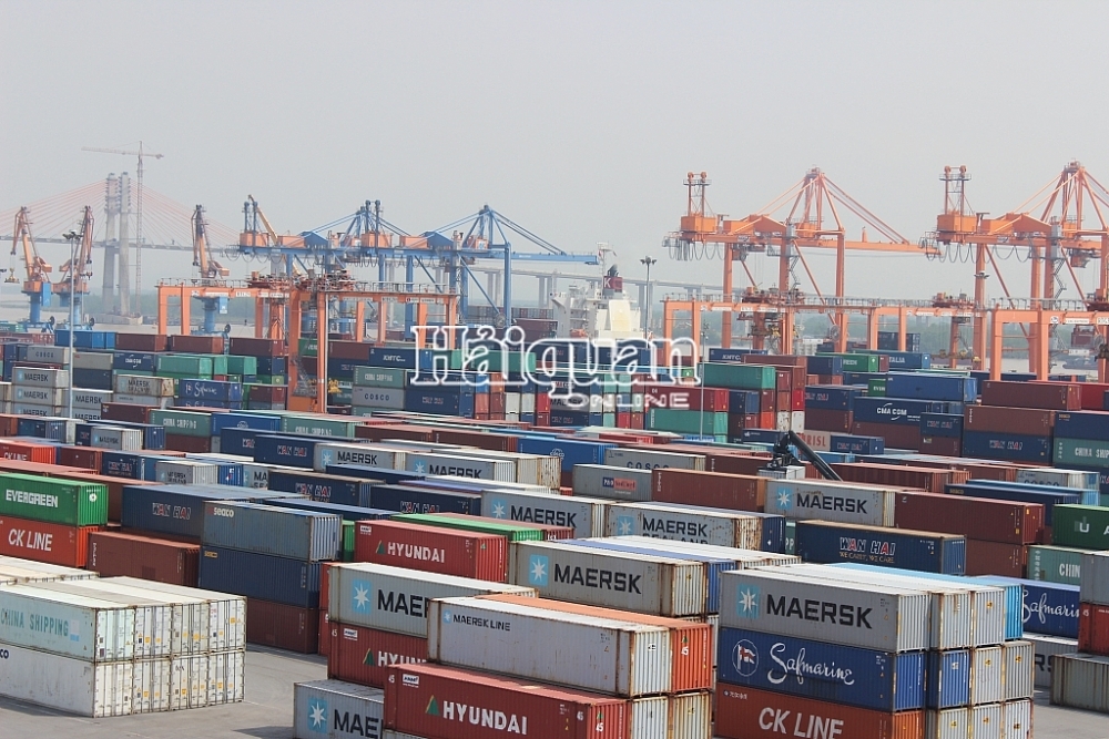 ハイフォン市・タンブ(Tan Vu)港に積み上げられたコンテナ=haiquanonline.com.vn