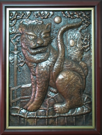 「私の作った銅板絵は極めて薄い銅板で作られたものです。絵模様は自然で美しいです。その上、その絵には銅色の他、黒や赤い色もあるので、絵が生きているように見えます」