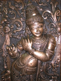 「銅彫刻と比べると、銅板絵は殆ど彫刻がありません。銅板絵の場合、とりあえず、版に描きます。そして版の裏面に絵を彫り、最後に絵の表面をハンマーと火で銅板絵を調整します」