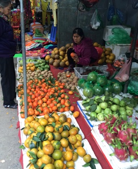 ベトナム伝統的お正月テトにとって、桃の花とキンカンなどは、特別な飾り物として欠かせませんが、これらが路地裏市場で買えます。