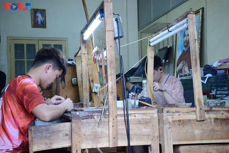 グエン・ホン・ハインさん夫妻とセンバック社の銀細工職人にとって、センバック社は銀製品を経営する場所だけでなく、前の世代の伝統文化を保存・発展する場所でもあります。