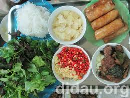 ソン はい。ハノイ人が週に何回も食べるブンチャーは、揚げ春巻きや炭火で焼いた豚バラ肉の薄切り、つくねをヌックマムのきいた甘酸っぱいタレに入れて、米の細麺ブンと一緒に食べるものです。