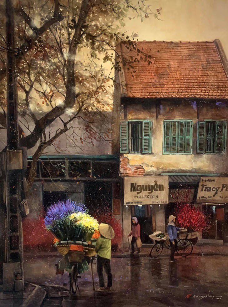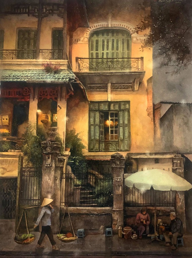(VOVWORLD) - 先ごろ、画家のホアン・フォンさんはハノイを描く水彩画28点を披露しました。1987年にホーチミン市に生まれたフォンさんは、2017年にハノイ旅行をし、その時から現在までハノイの絵を描いできました。フォンさんによりますと、早朝と深夜のハノイの平和な美しさは画家にマインインスピレーションを与えました。この写真記事で、画家のフォンさんの作品をご紹介します。