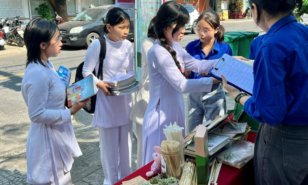 (VOVWORLD) - ベトナムの学生ボランティア団体「フライ・トゥ・スカイ(Fly to Sky)」は、毎年恒例の「古本と植物の交換」プロジェクトを実施しています。1年間使い古した教科書やノート、絵本を持ち寄ると、植木鉢や布ぶくろ、タネなど環境に優しい製品と交換できるのです。集まった本は分別され、最終的には恵まれない子供たちに無償で寄贈されます。